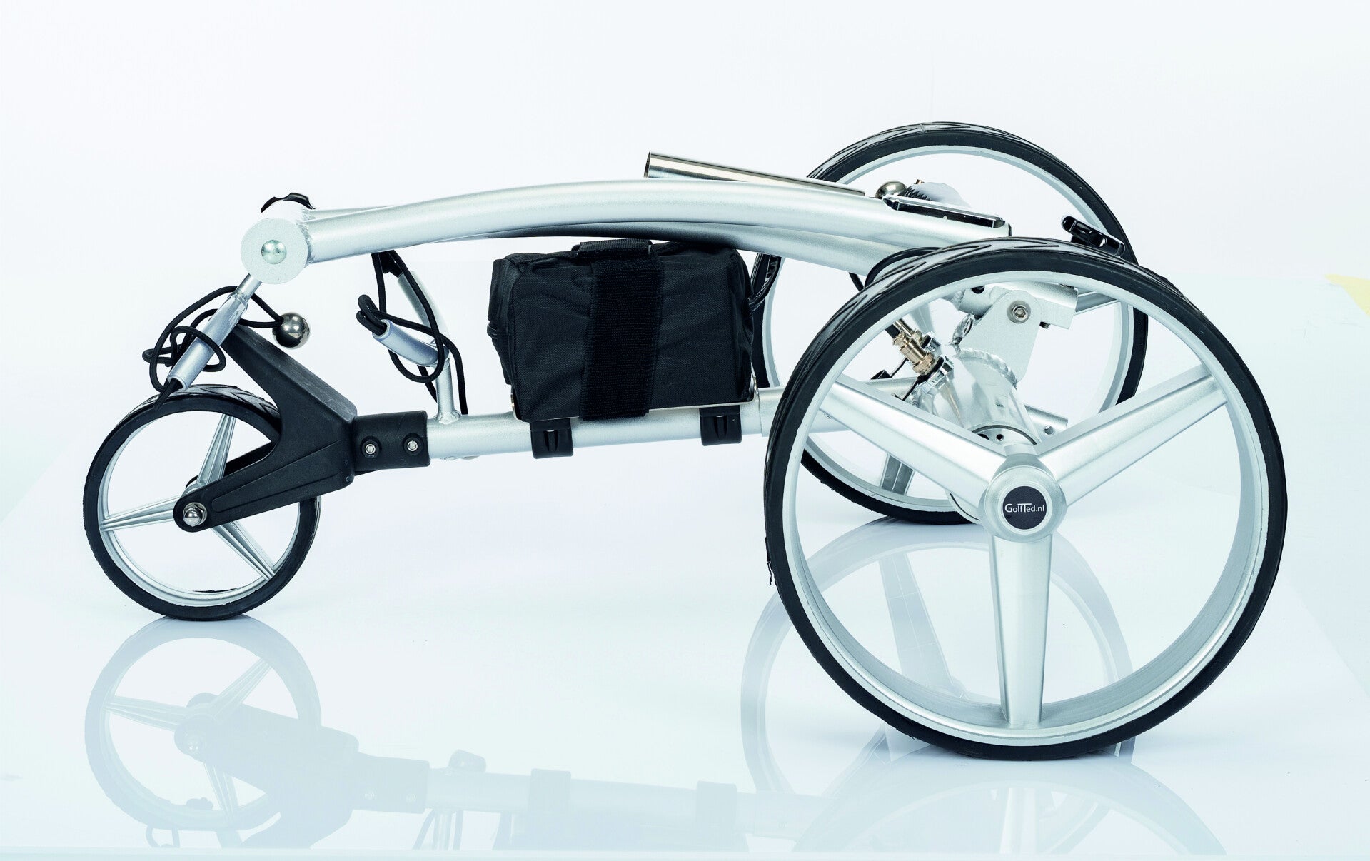 Prachtige golftrolley met een modern en strak uiterlijk. Gemaakt van hoogwaardig alumiunium, wind en weer bestendig. Twee krachtige motoren in de as zorgen ervoor dat u makkelijk en moeiteloos een golfronde kunt lopen. Met de lithium accu loopt men 36 holes. De trolley is makkelijk dubbel te vouwen en is daarom als een compact pakket mee te nemen en neemt weinig ruimte in de auto of locker op de club. Kortom, een genot om mee te lopen en vele anderen kunnen dat beamen. Wij geven twee jaar garantie op de trolley en de accu.